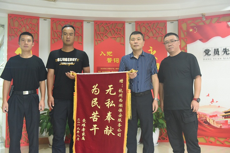 9月4日上午,我司保安二部梅昌余大隊駐雙浦派出所特保隊員龍新攜家屬向公司贈送“無私奉獻、為民苦干”錦旗,就因8月10日“利奇馬”臺風期間其家庭遭遇巨變,我司給予人道主義關懷和慰問事宜向公司表示感謝。